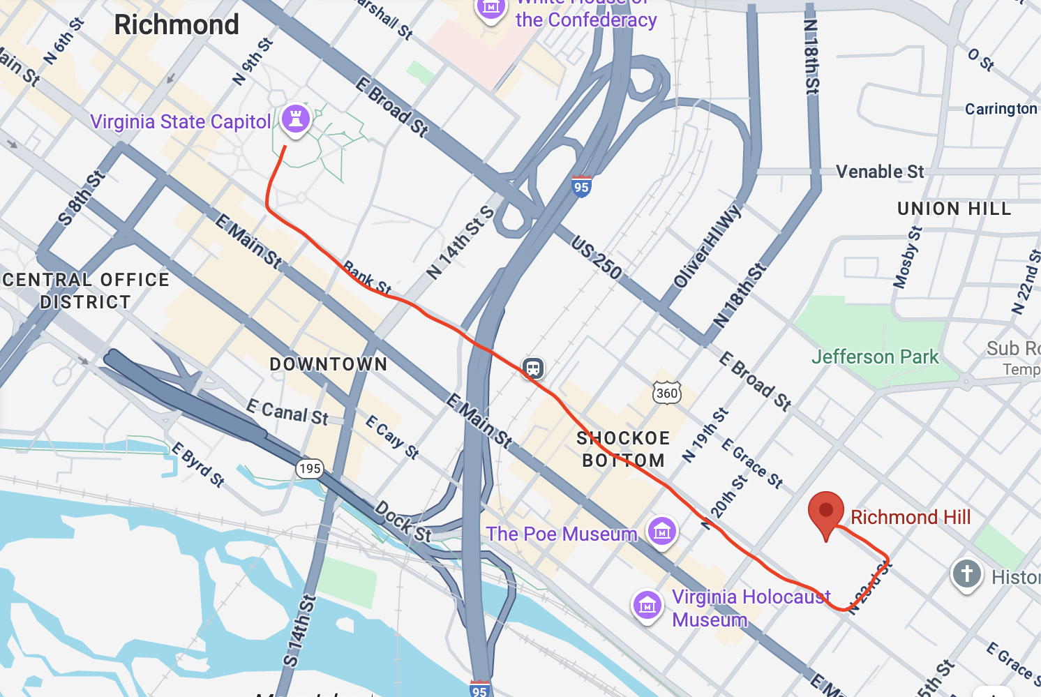 Location: Meet at Richmond Hill, 2209 E Grace St. Richmond, VA 23223